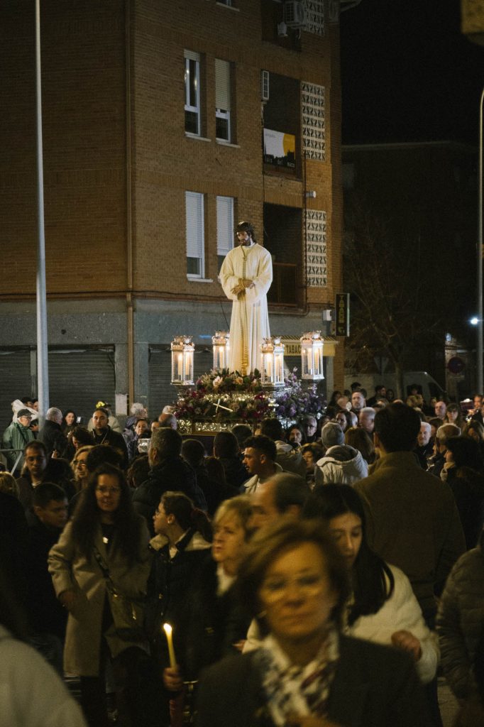El cortejo avanzó entre muestras de recogimiento y cercanía popular, acompañado musicalmente por la Agrupación Musical Cautivo, cuyos sones marcaron el caminar del paso por las avenidas del barrio. Una estampa ya habitual de la Cuaresma toledana que volvió a convertir al Polígono en escenario de fe y devoción en vísperas de la Semana Santa.
