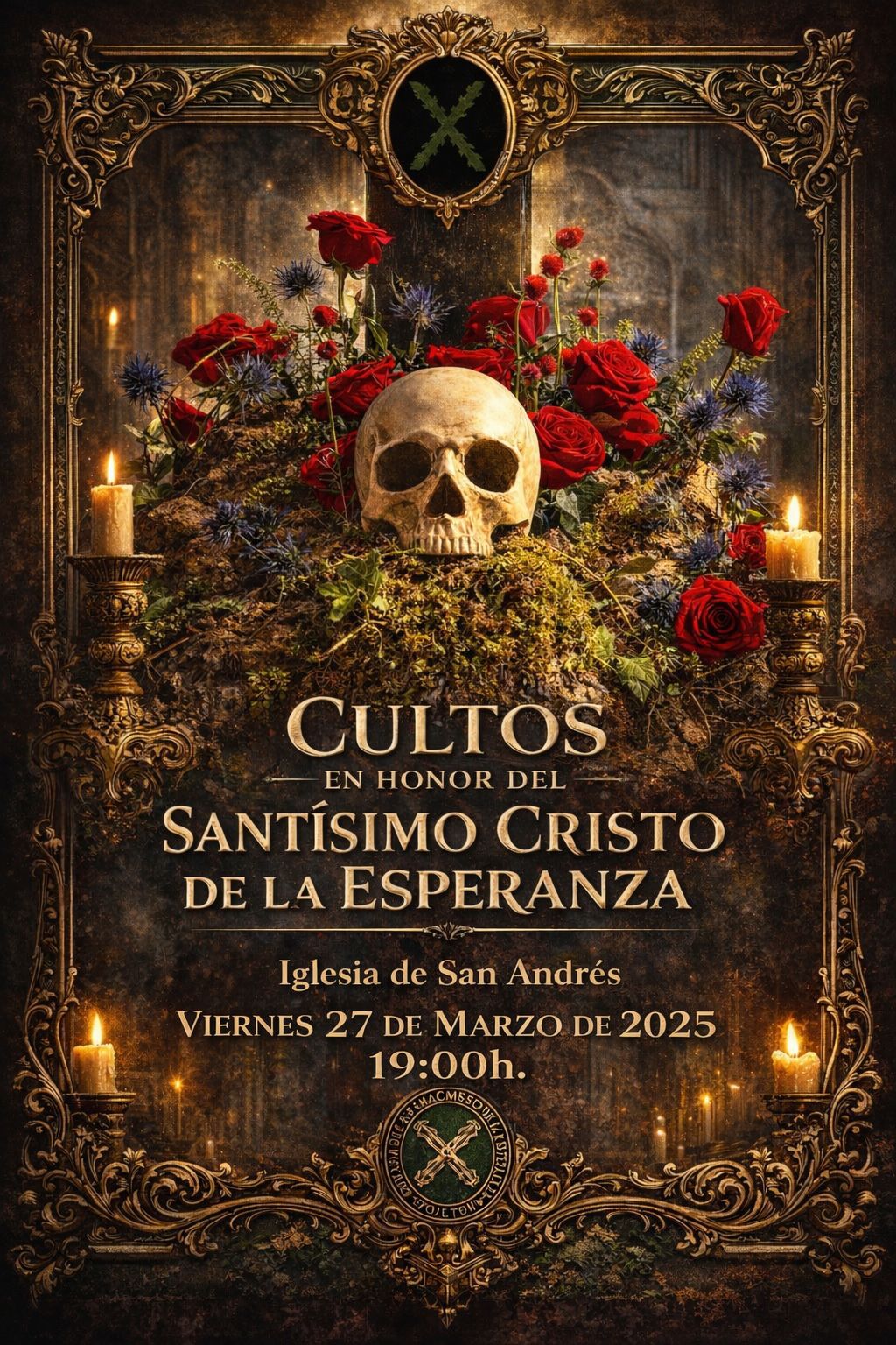La Cofradía Penitencial del Cristo de la Buena Muerte inicia su Solemne Triduo con la celebración del primer día de cultos. La Eucaristía estará especialmente dedicada a los hermanos fallecidos en fechas recientes, en un emotivo recuerdo orante de la corporación.